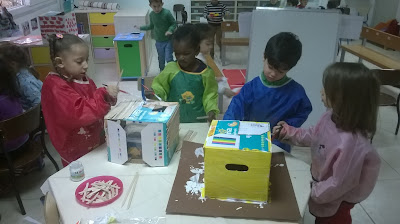 Nous avons également commencé à fabriquer les maisons des trois petits cochons.